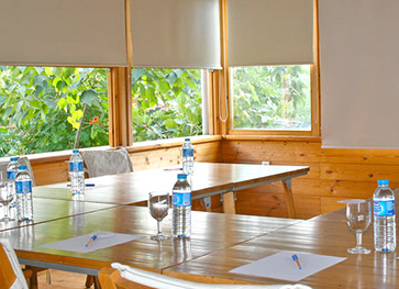 Toplantı Salonu Yeşilin en güzel renkleriyle huzuru içinize çekerken, yapacağınız toplantının etkilerini bir düşünün. Toplam 100 kişiye kadar toplantı salonu;tiyatro, sınıf ve "U" düzeninde farklı kapasiteler ile kullanılabilir.